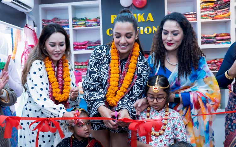 Actress Priyanka Karki, singer Rekha Shah, and writer & Nepali cuisine expert Rohini Rana inaugurated Batika Creations Boutique in Thapagaun, Kathmandu. On Saturday, actress Priyanka, singer Rekha, and Nepali cuisine expert Rohini cut the ribbon to officially open the boutique. This boutique was established and is operated by Mrs. Himalayan Nepal and fashion entrepreneur Goma Adhikari Dhital.